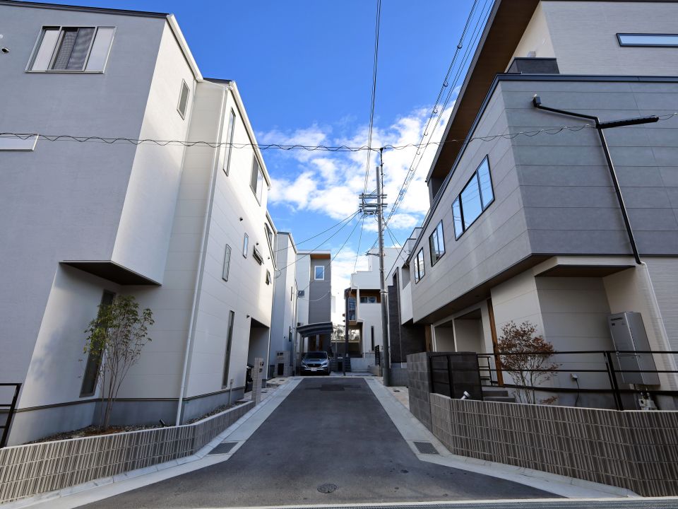 6邸それぞれに個性を持たせつつ、閑静な街並みになじむ家々が完成しました。