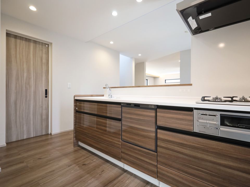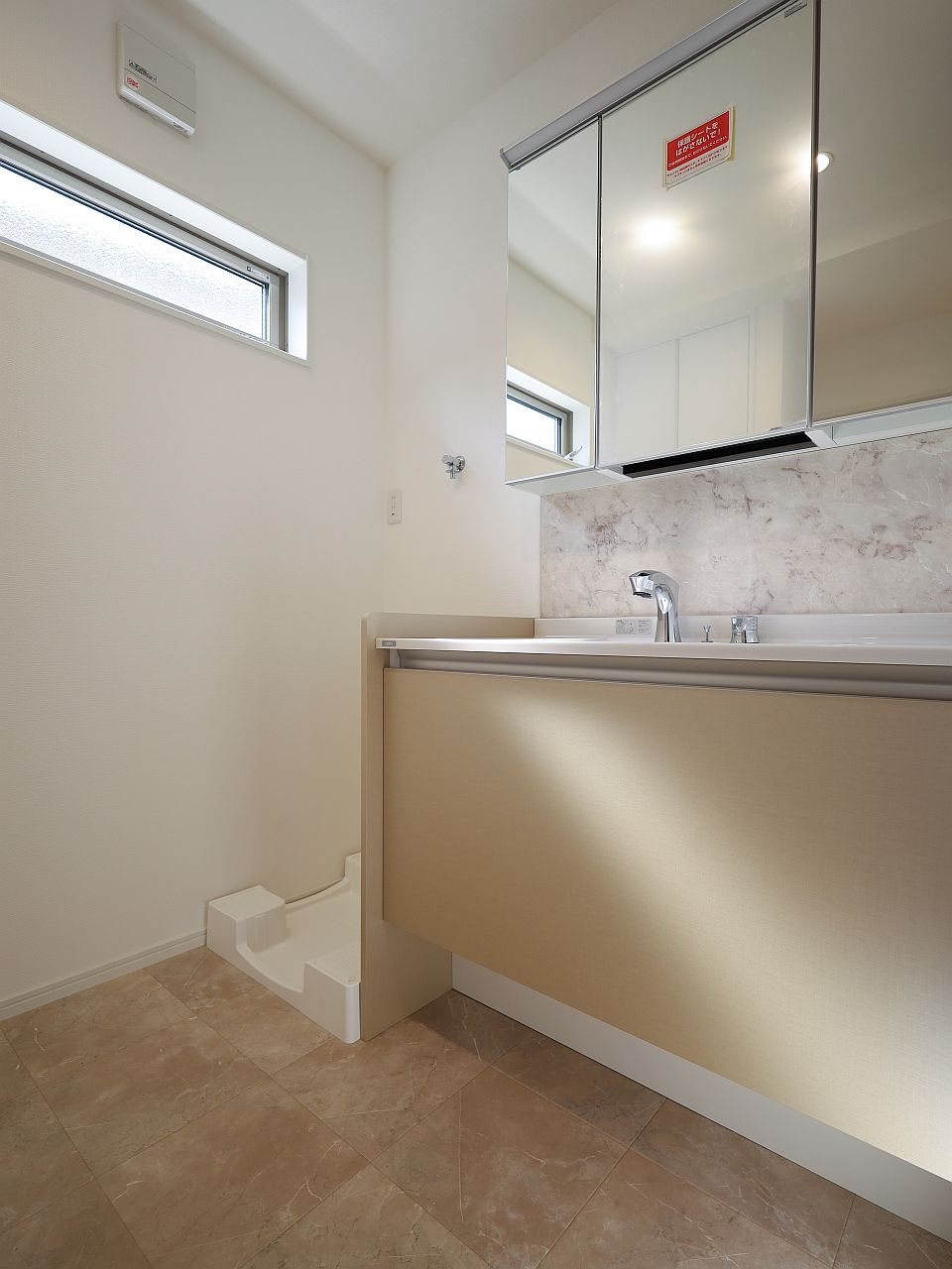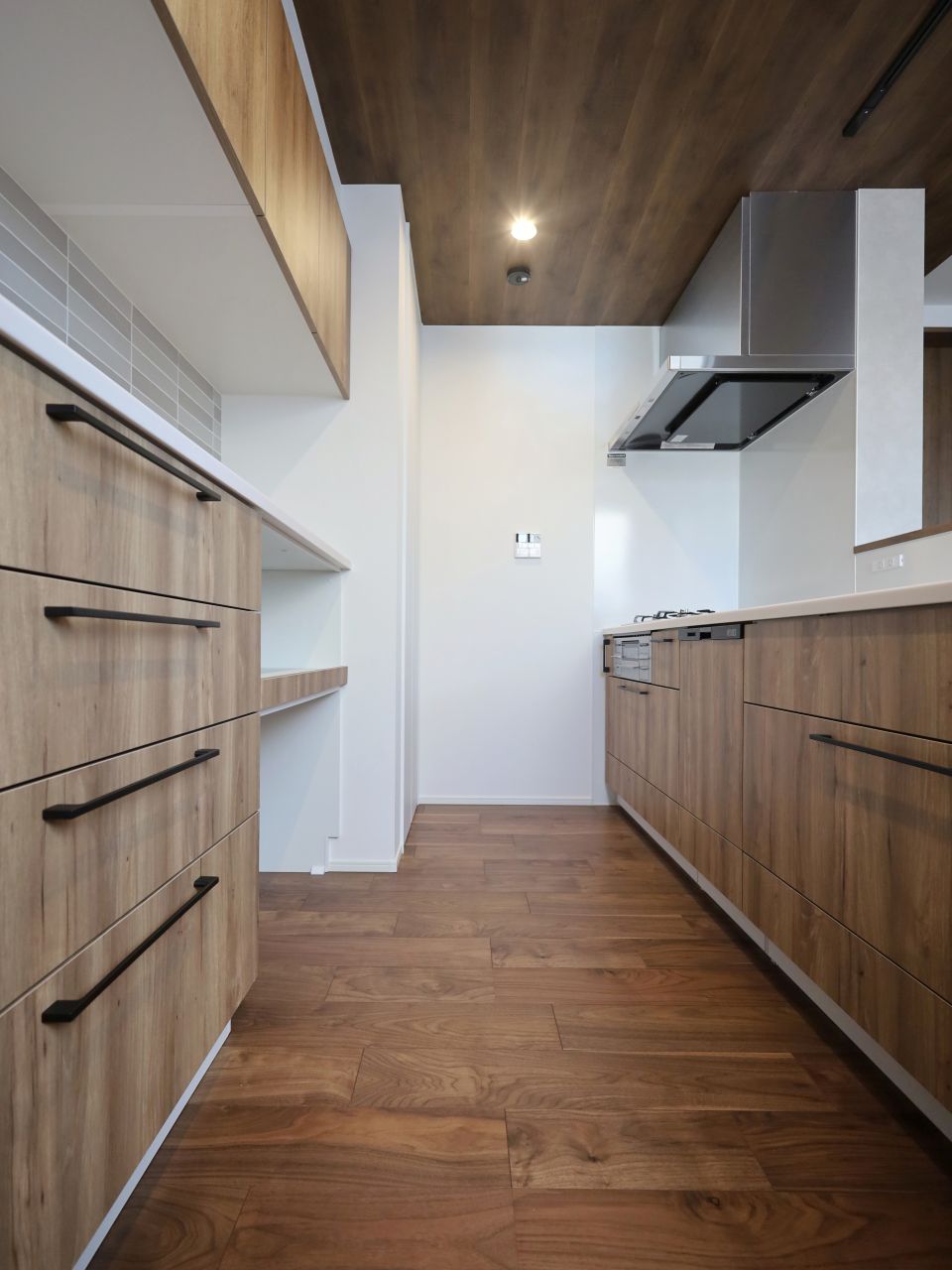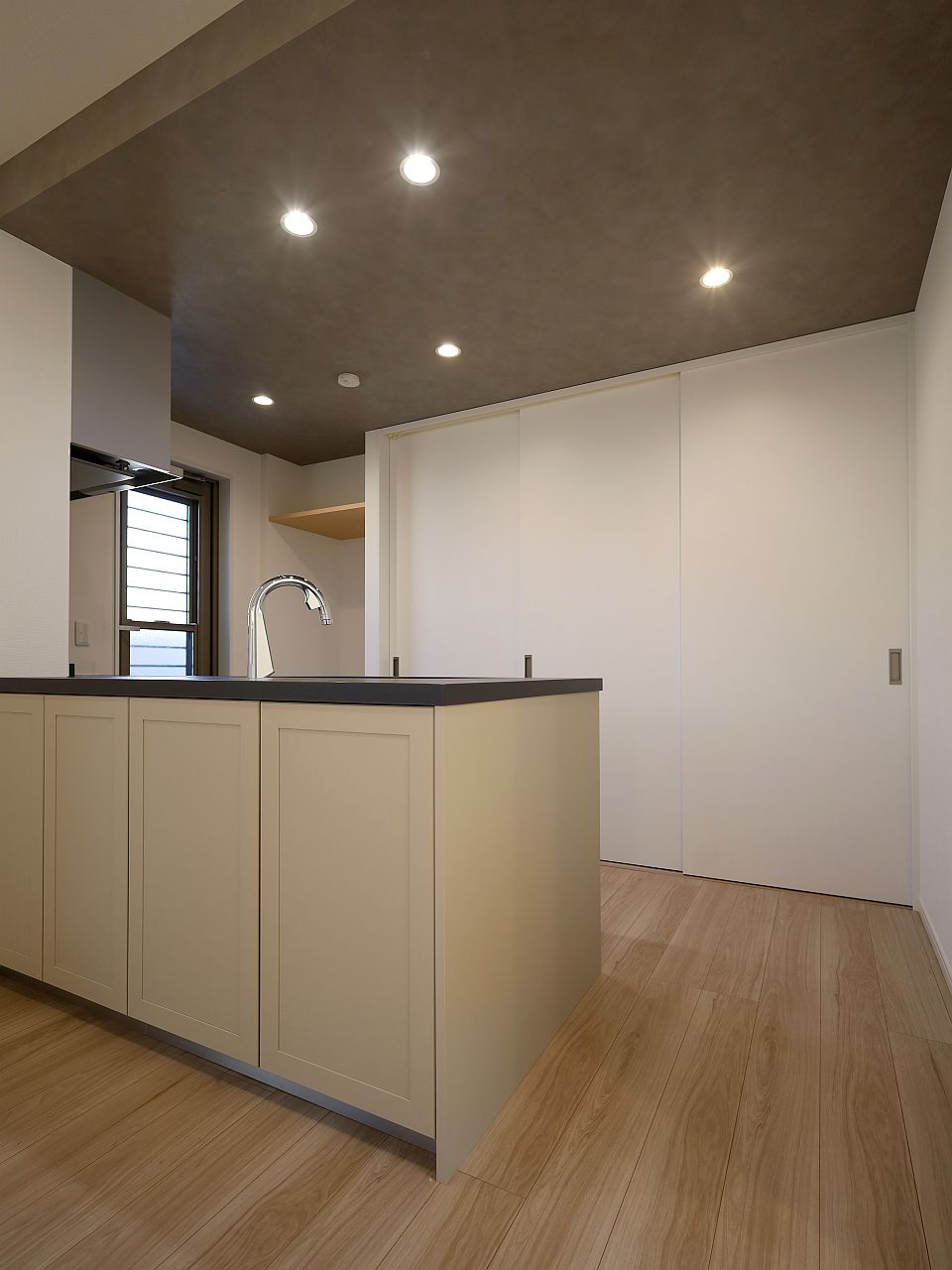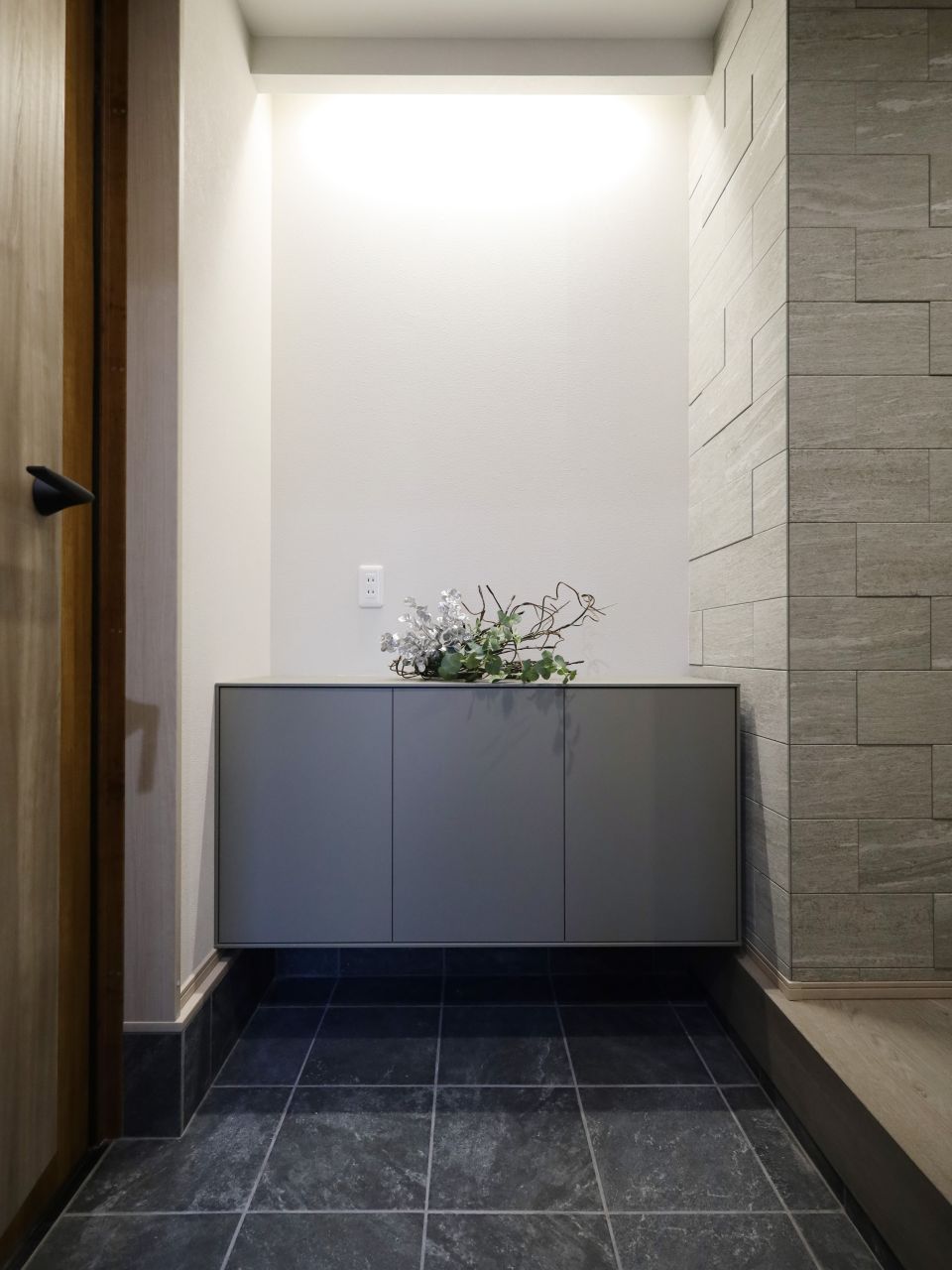 またエクステリア・インテリアともに「真っ白で明るい空間」というよりは落ち着きのある素材や色を選び、光と影のコントラストが美しく出るようなデザインに。間接照明で、エコカラットの凹凸やアクセントクロスが美しく浮かび上がる工夫も施しています。
