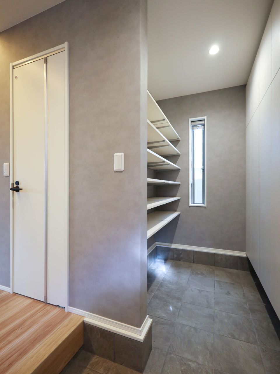 プランはそれぞれ異なりますが、共通するのは玄関に大容量の土間シューズインクロークをもうけ、ホテルのクロークのような空間にしていること。玄関にゆとりを作ることで、家全体がより広く感じられます。