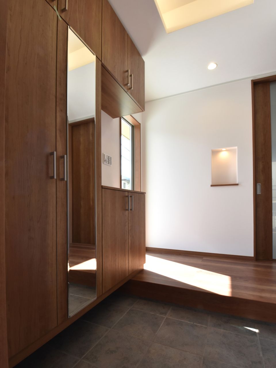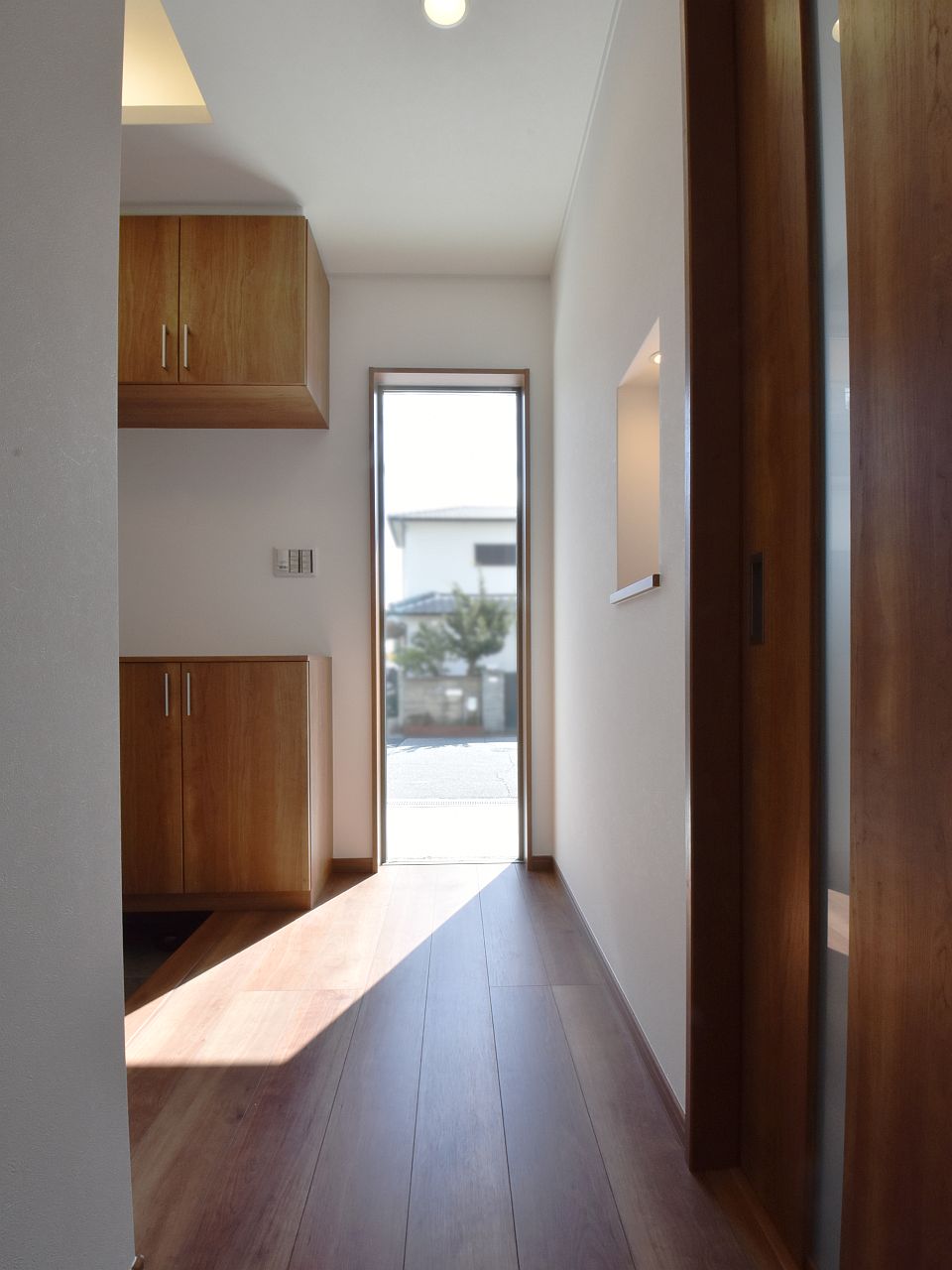 前面道路が広いため明るい陽の光に包まれ、さらに玄関ホールには大きなFIXガラスから光がさし込みます。